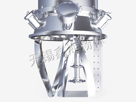 在行星架上有一刮壁刀隨行星架轉(zhuǎn)動(dòng),緊貼桶壁不斷的刮拭,桶壁經(jīng)大型立車(chē)精加工后,再經(jīng)大型自動(dòng)拋光機(jī)拋光,確保行星架上的活動(dòng)刮刀在旋轉(zhuǎn)時(shí)把桶壁的物料完全刮掉,使桶壁無(wú)滯留料,提高混合效果。